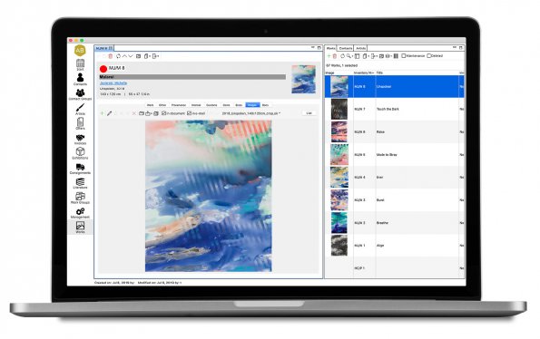Our art management solution for galleries, artists, estates, and collections. It is a local installation on your personal computer or in your network, independent of the internet. But you can also choose online hosting for remote access to your database.